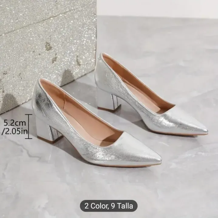 ¡Destaca con estos elegantes tacones plateados y dorados! Perfectos para cualquier ocasión especial, su diseño sofisticado y brillante te hará lucir radiante. Confeccionados con materiales de alta calidad para brindarte comodidad y estilo. ¡Hazte con ellos y deslumbra a donde quiera que vayas!